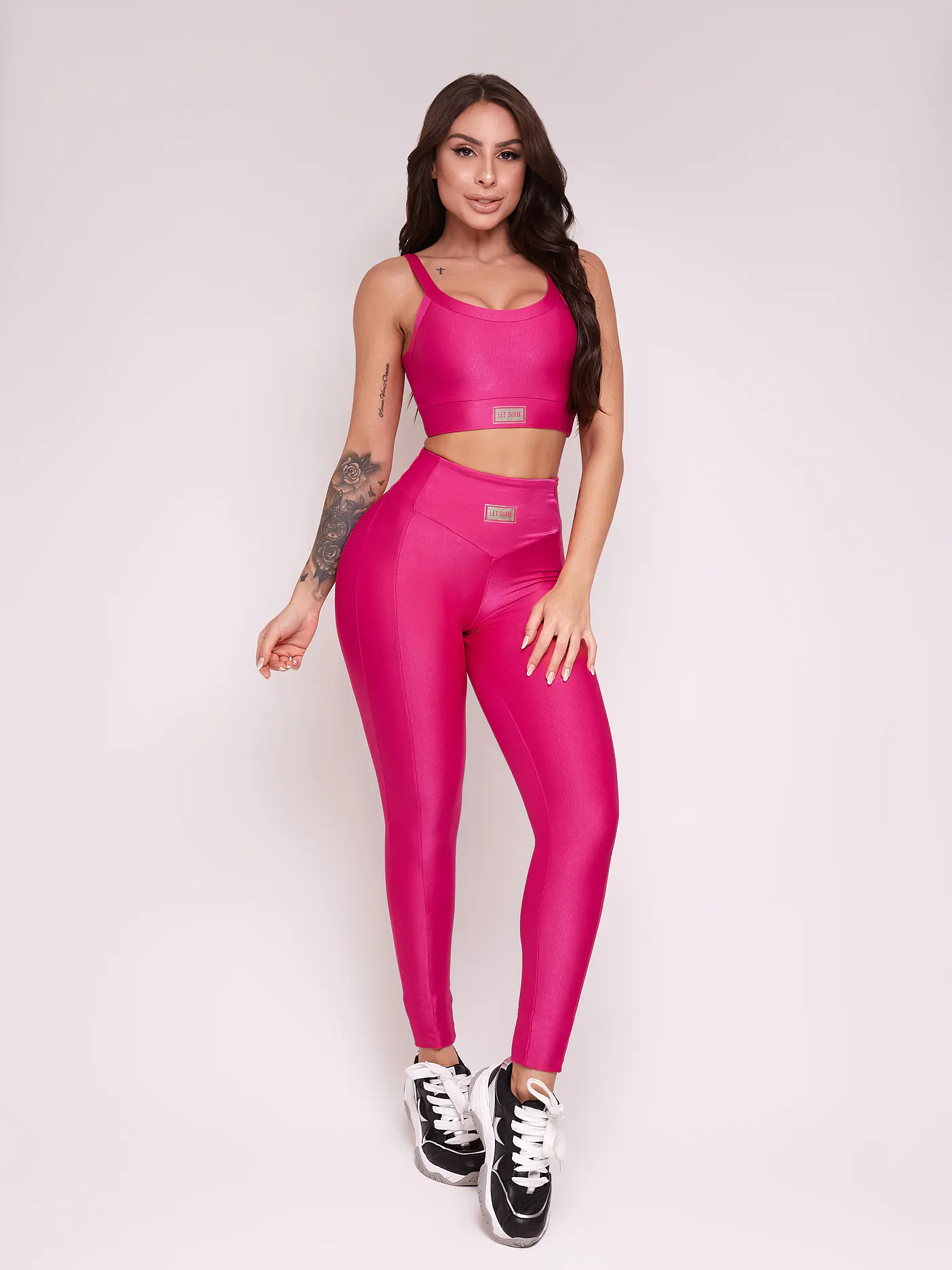 Los leggings Bright tienen un diseño diferente en la cinturilla y un modelado “push up” que levanta el trasero, que solo tiene Let'sGym. Estos leggings cuentan con cortes estratégicos que realzan el cuerpo y embellecen aún más tus curvas. Lleva un termoadhesivo metalizado en plata.